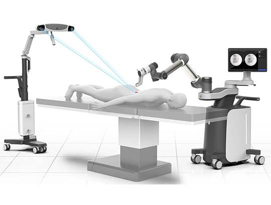 It comprises a six-degree-of-freedom robotic arm that delivers surgical instruments, an optical tracking system, a surgical master control and support platform, and a navigation system. Providing visualization that helps doctors plan the surgery and approach, we improve surgical precision with minimized trauma and intraoperative radiation. It represents the first comprehensive integration of robots and intraoperative imaging in data, control, and workflow. It features surgical efficiency and consistency thanks to its autonomous registration driven by its closed-loop system, shortened learning curve, and streamlined process. In addition, it enhances the precision of screw placement, a vital step in spinal instrumentation, decompression, fusion, and augmentation procedures. Its superiority over competitors in clinical accuracy, surgical performance (measured by good-to-excellent screw placement), and image clarity has been substantiated in the first controlled trial performed in China.